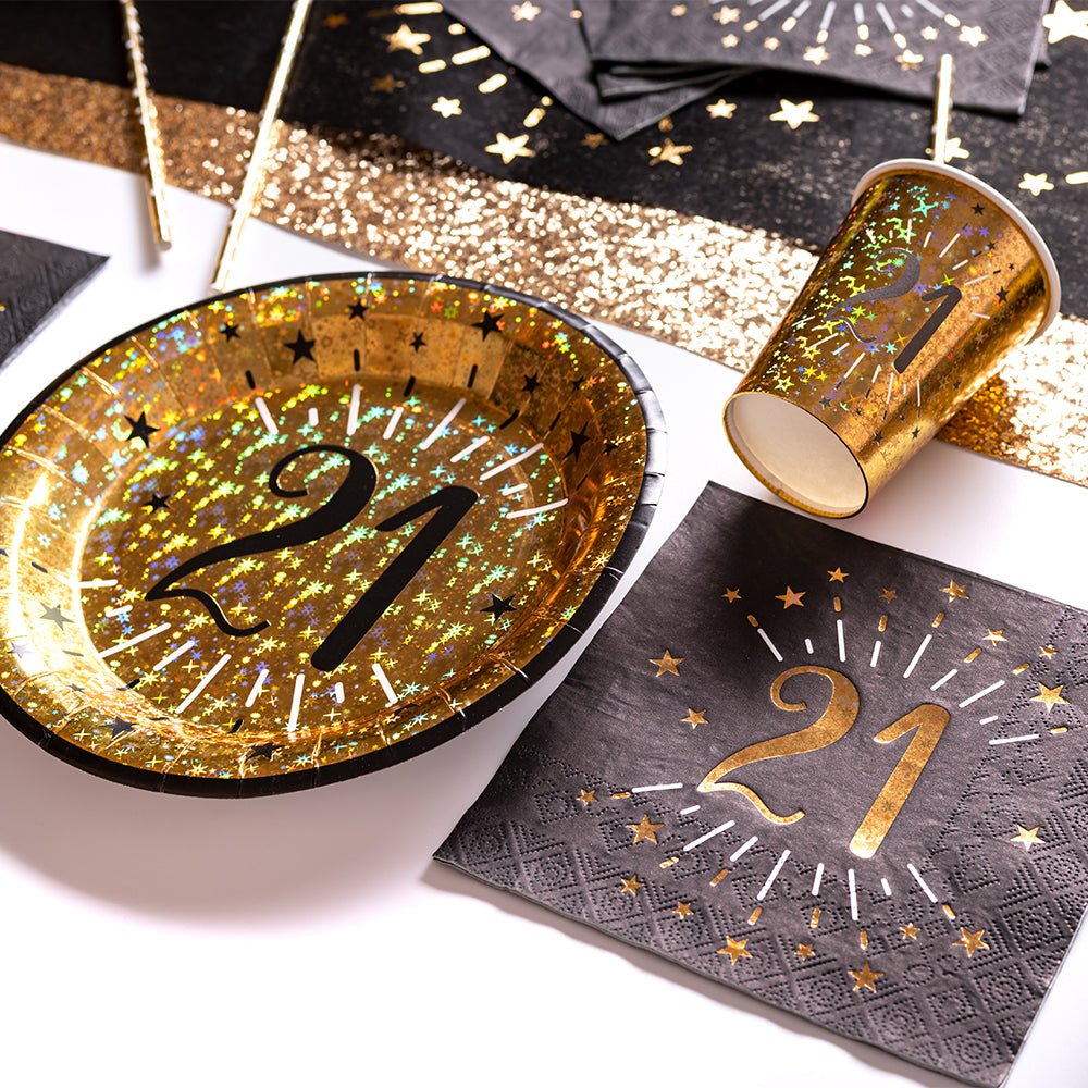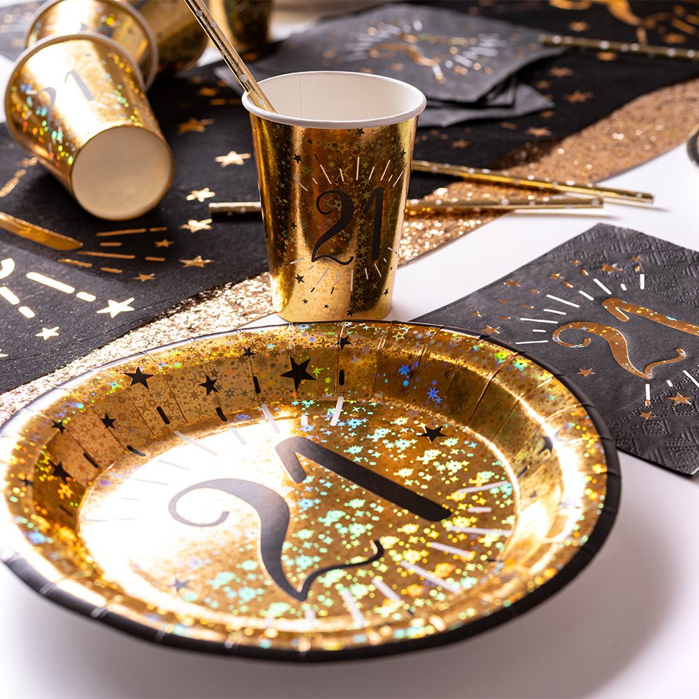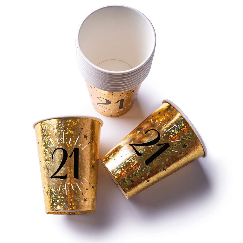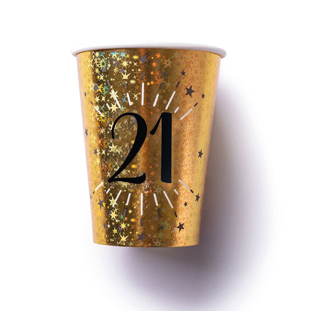These 21st Birthday Party Cups Come with a Golden Holographic Shimmer!