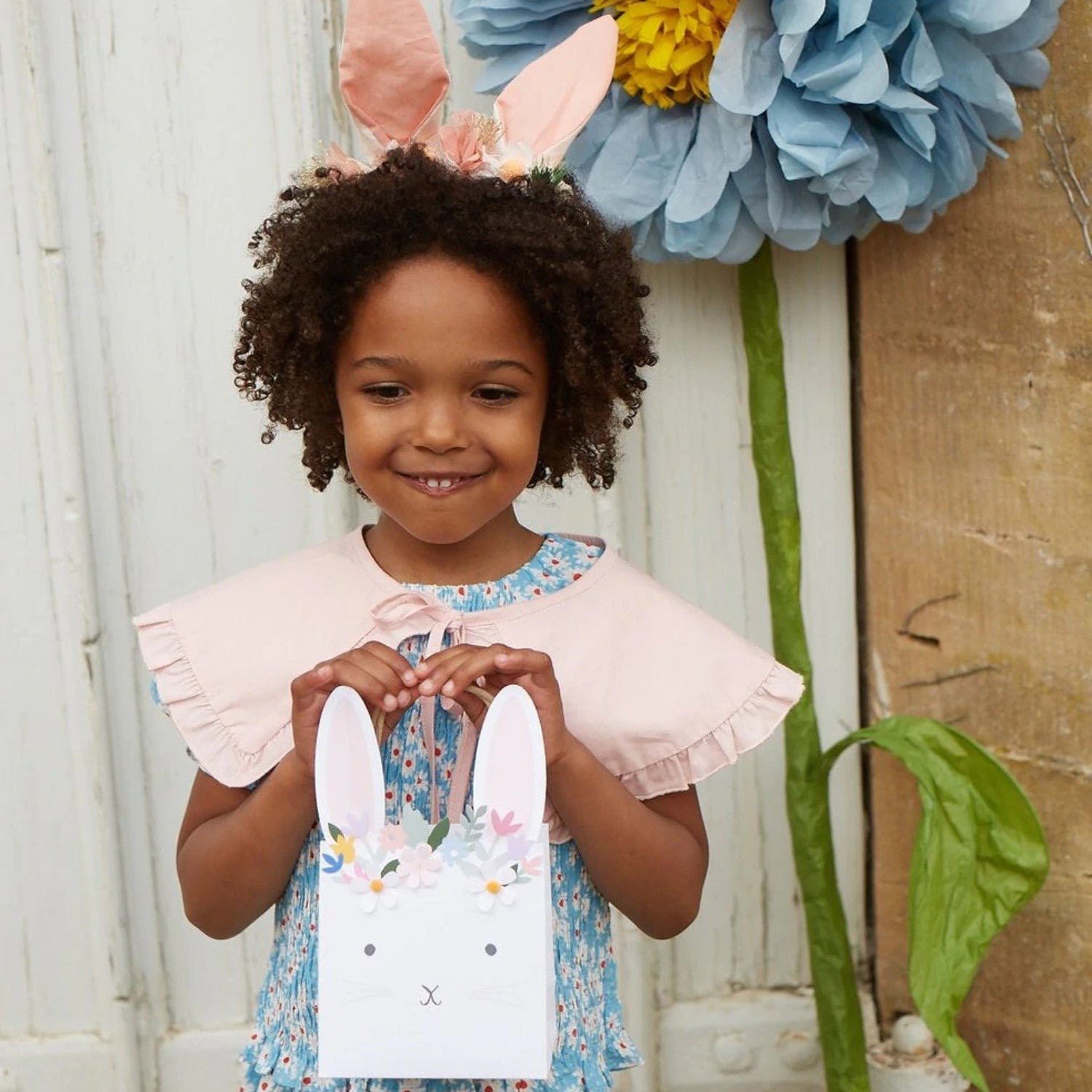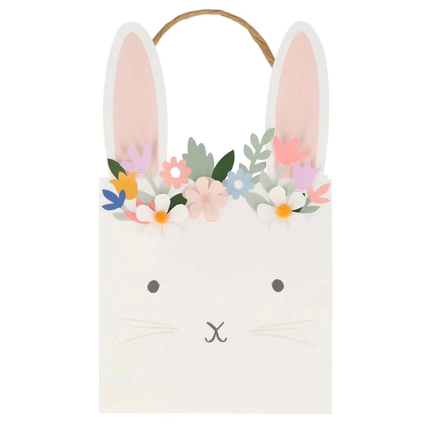 These wonderful Easter bunny bags feature a floral and foliage cut out design, and are embellished with 3-D flowers with pompom centers. They are perfect to use to collect Easter eggs, or as party bags to take treats and gifts home.