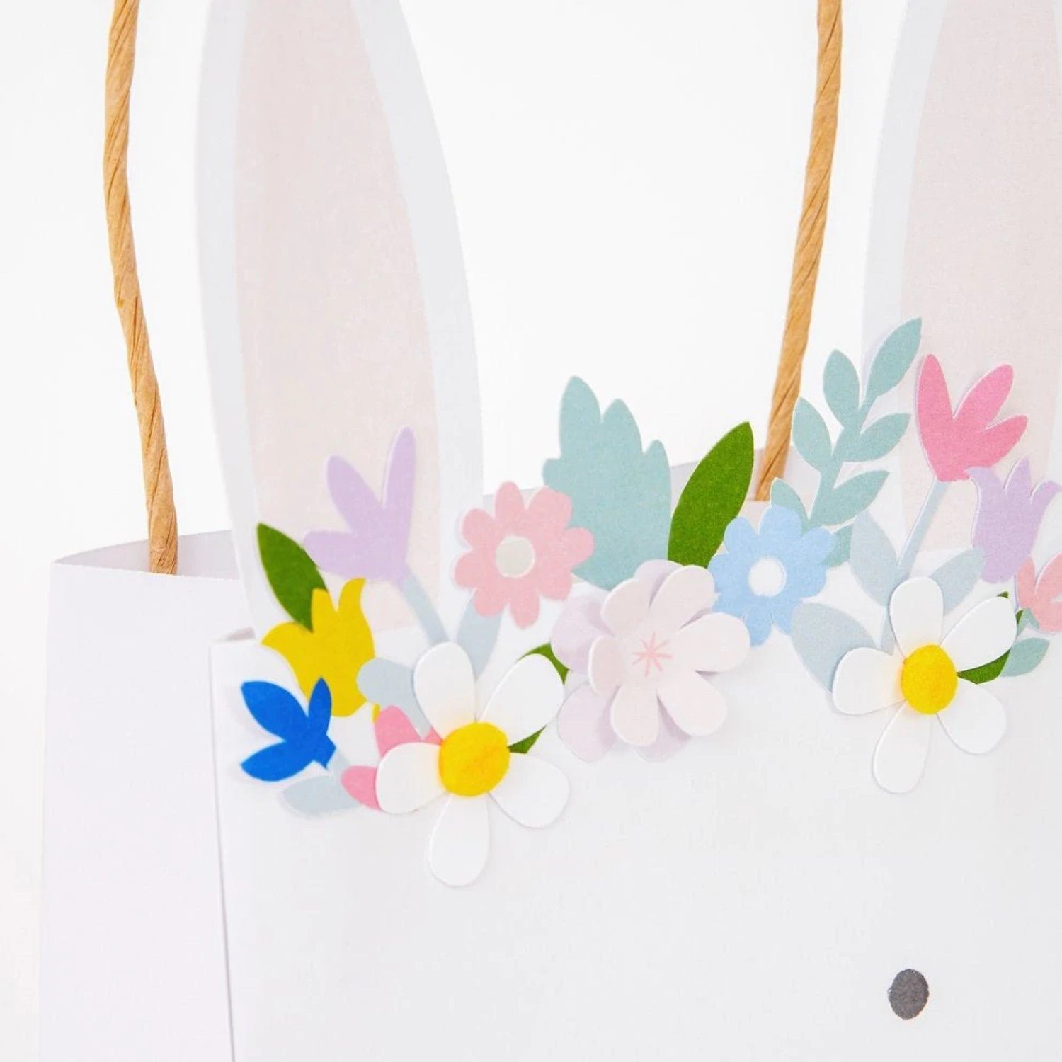 - They are crafted in the shape of a bunny head, with sweet features, pink ears and floral and foliage details