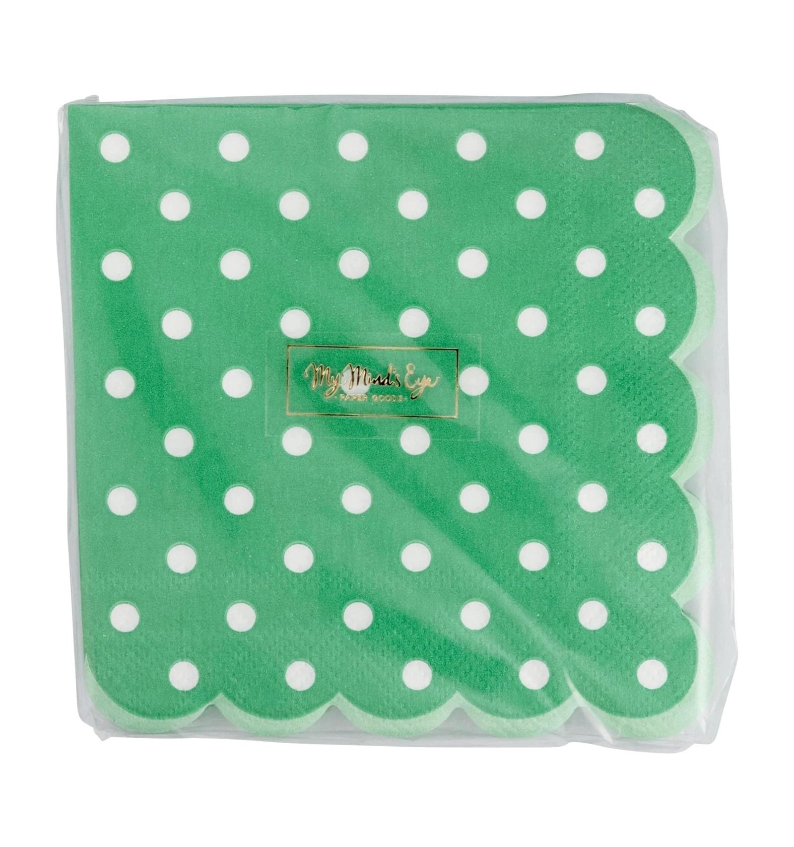 Brighten up your celebration with these Green Polka Dot Party Napkins! Featuring a lively green background with crisp white polka dots and delicate light green scalloped edges, these napkins add a fun and festive touch to any gathering. Perfect for birthdays, St. Patrick’s Day, picnics, or spring celebrations, they bring both charm and functionality to your table. Made from durable paper, they’re great for serving drinks, appetizers, or handling spills with ease. Keep your party stylish and mess-free with these cheerful polka dot napkins!