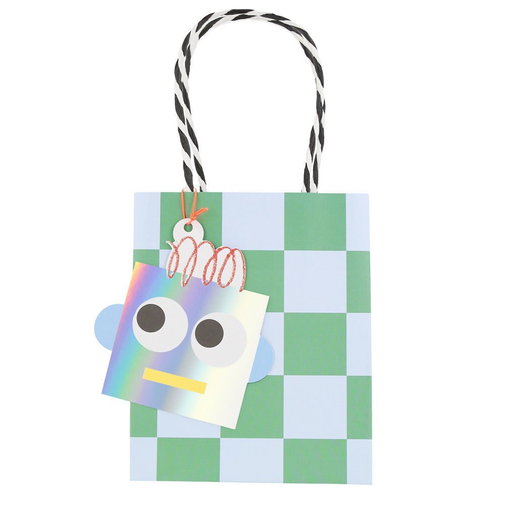 Fun and nostalgic, our classic toy box icons will appeal to both kids and adults celebrating the joy of play. The bold and bright retro designs of these party bags will instantly make your party guests feel happy! They each come with a colourful sticker too. They’re also great to reuse at home as storage bags🦖💥
